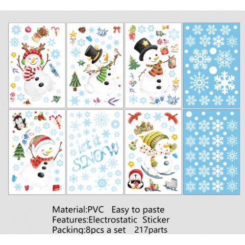 Świąteczne naklejki kolorowe na okno 8 Arkuszy 20cm x 30cm NKD13