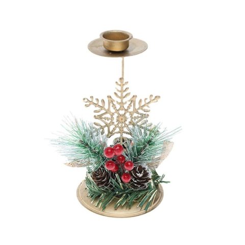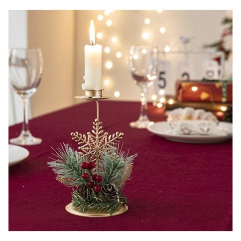 Ozdoba Świąteczna Świecznik Boże Narodzenie złoty ozdobny na stół Glamour 15 cm KSN121 Materiał: Produkt wykonany z tworzywa sztucznego. Wymiary: Wysokość: 15 cm Szerokość: 8,5 cm Waga: 44 g