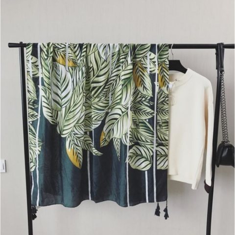 SZAL CHUSTA Print ZIELEŃ Bawełna SZALS37