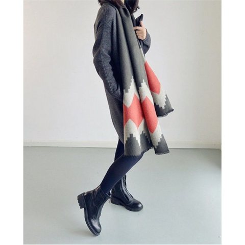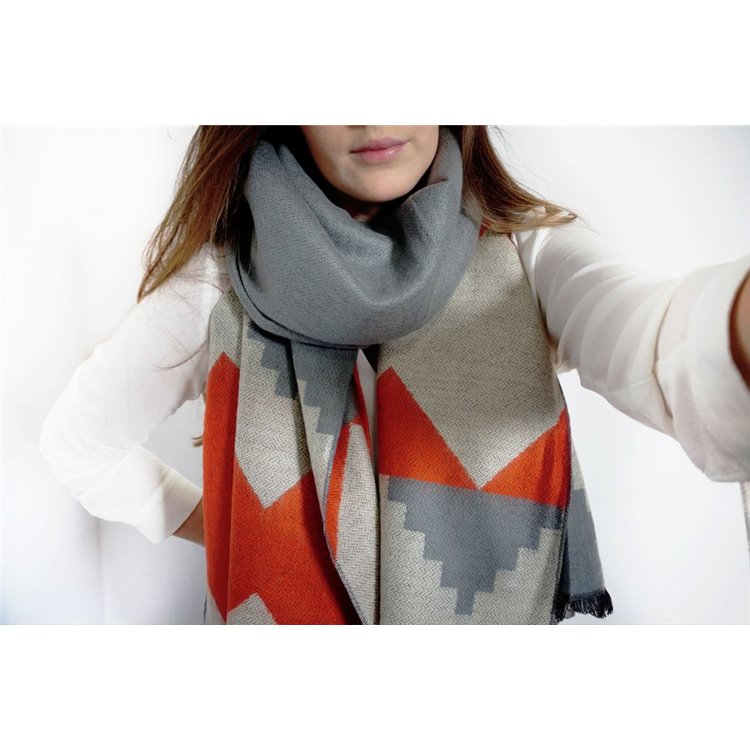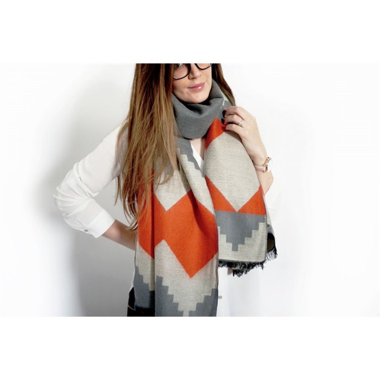 Elegancki szal / chusta w kolorach moreli i szarości Wymiary : 190 cm x 70 cm Materiał : 80 % wiskoza 20 % bawełna Idealny do jesiennych kurtek oraz zimowych płaszczy.