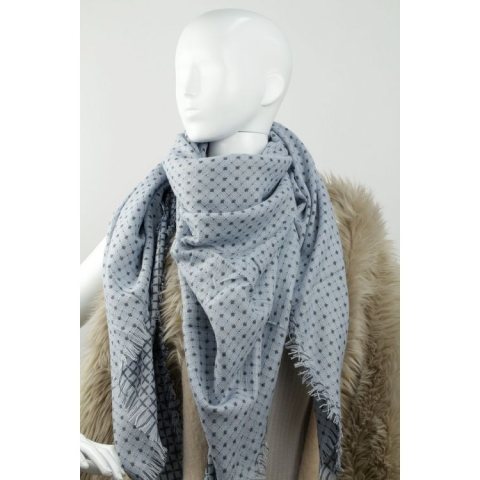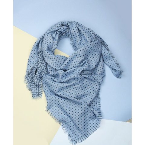 Elegancki szal / chusta Kolory: jasny niebieski 140 cm x 140 cm Materiał: 80 % wiskoza 20 % bawełna Idealny do jesiennych kurtek oraz zimowych płaszczy.