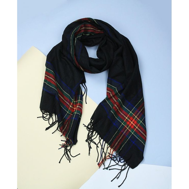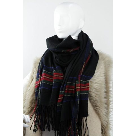 Elegancki szal / chusta Kolory: czarny, granatowy, czerwony, zielony 200 cm x 85 cm Materiał : 80 % wiskoza 20 % bawełna Idealny do jesiennych kurtek oraz zimowych płaszczy.
