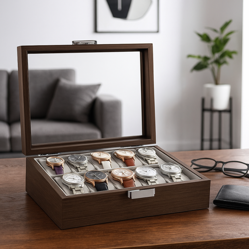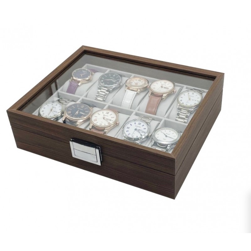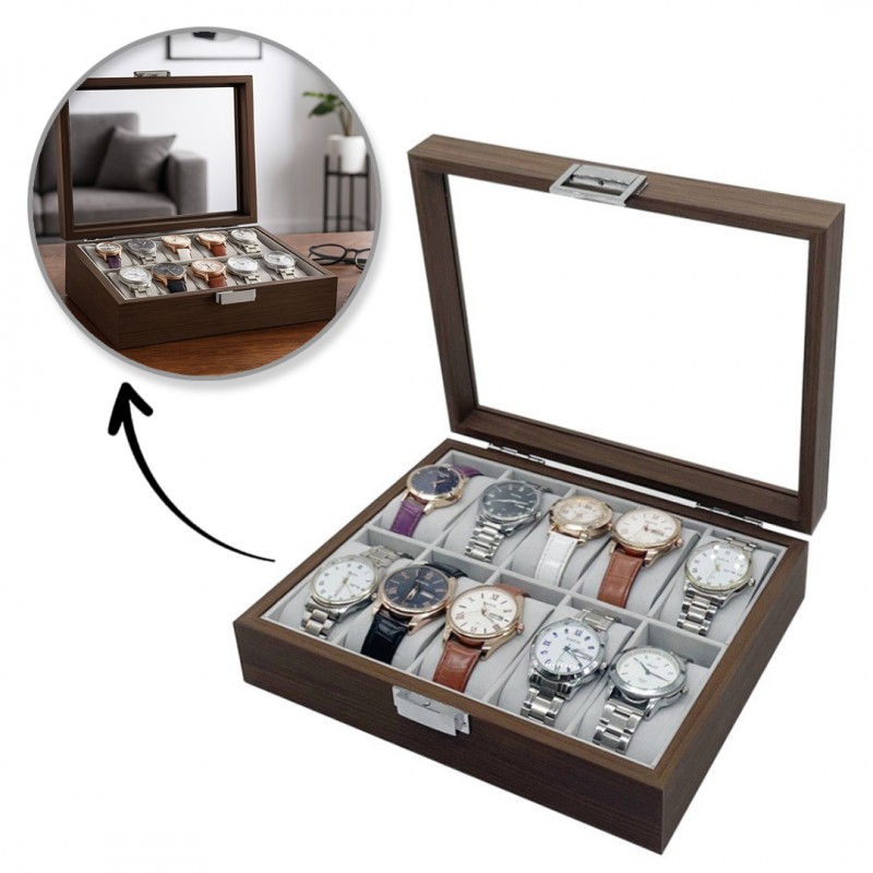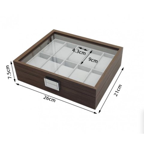 Szkatułka na 10 zegarków, etui, organizer zamykany ze szkłem 26x21cm PDMDF05