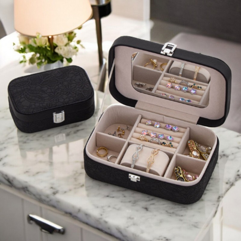 Szkatułka na biżuterię, etui, organizer, pudełko czarna koronka PD157CZ
