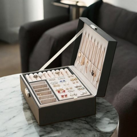 Szkatułka na biżuterię, etui, organizer, pudełko czarna PD155CZ