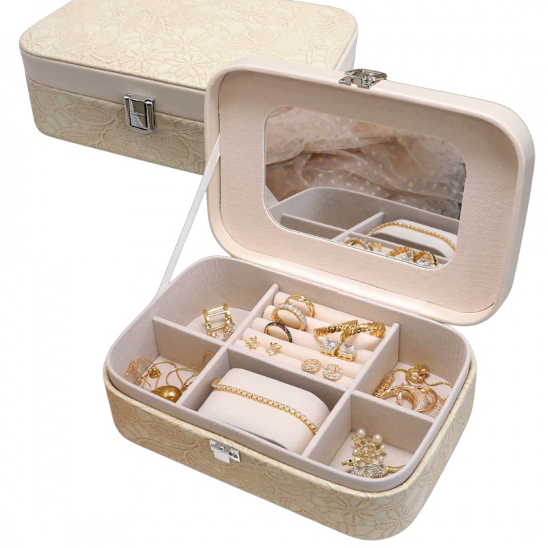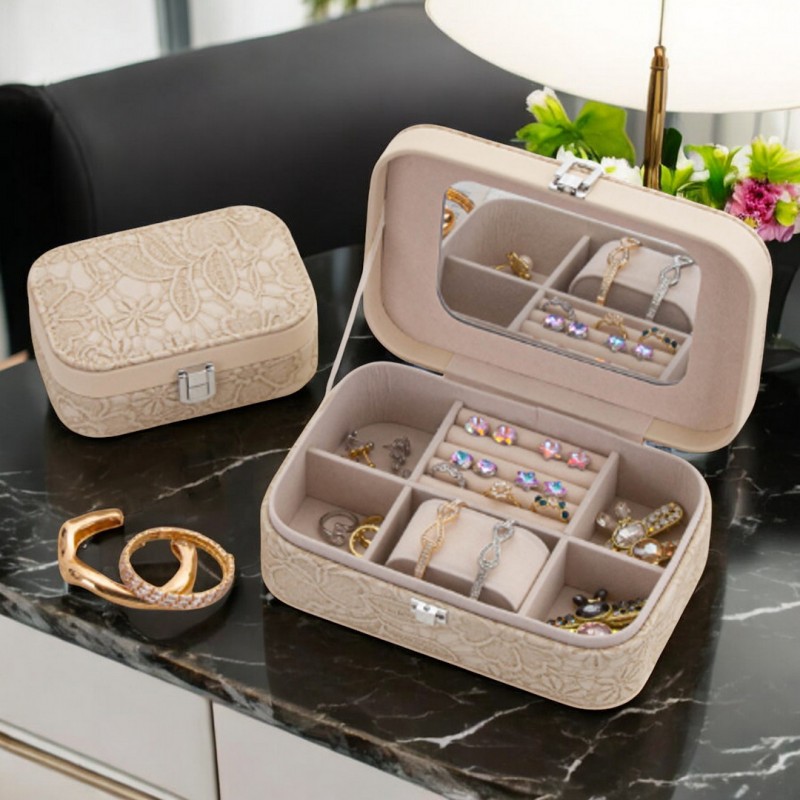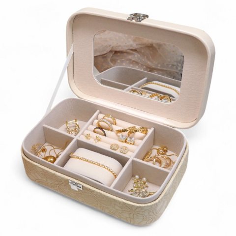 Szkatułka na biżuterię, etui, organizer, pudełko kremowa koronka PD157K