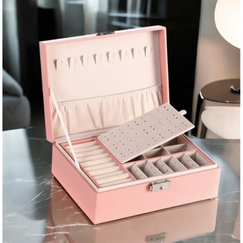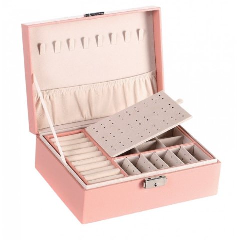 Szkatułka na biżuterię, etui, organizer, pudełko różowa PD155R