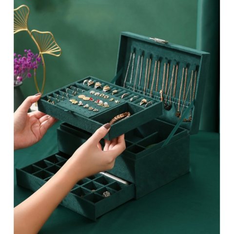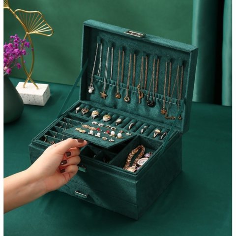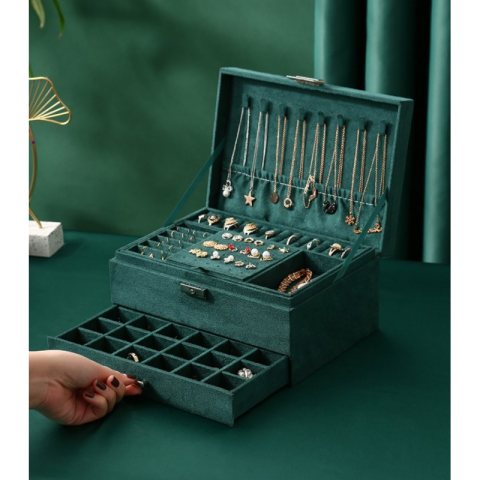 Szkatułka na biżuterię kuferek etui organizer butelkowa zieleń PD119