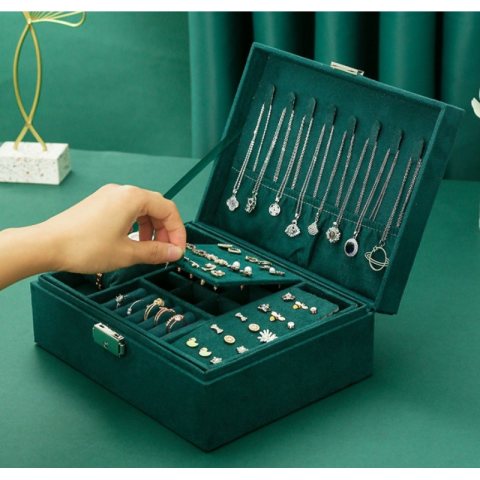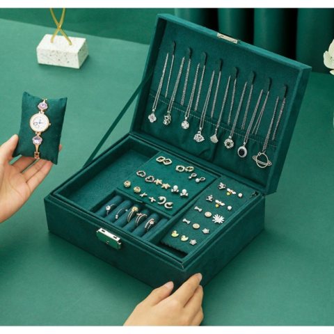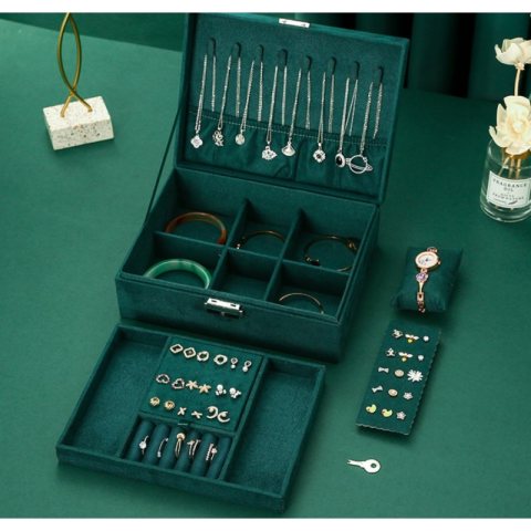 Szkatułka na biżuterię kuferek etui organizer butelkowa zieleń pudełko PD133