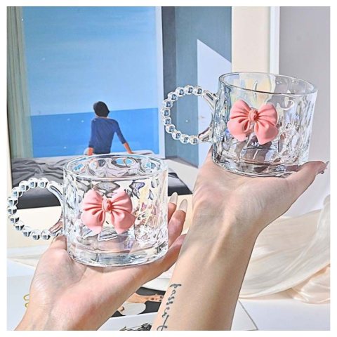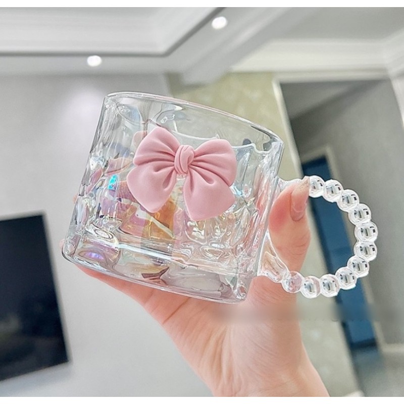 Szklanka opalizująca kokardka z uchem do kawy, drinków 1szt 260ml SZK80