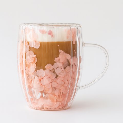 Szklanka termiczna ryflowana z kwiatami w środku, gipsówka róż 300 ml 1szt SZK157