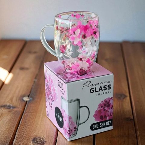 Szklanka termiczna z kwiatami w środku 300ml 1szt SZK187