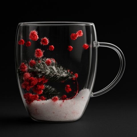 Szklanka termiczna z kwiatami w środku, akcenty świąteczne, śnieg 300 ml 1szt SZK198