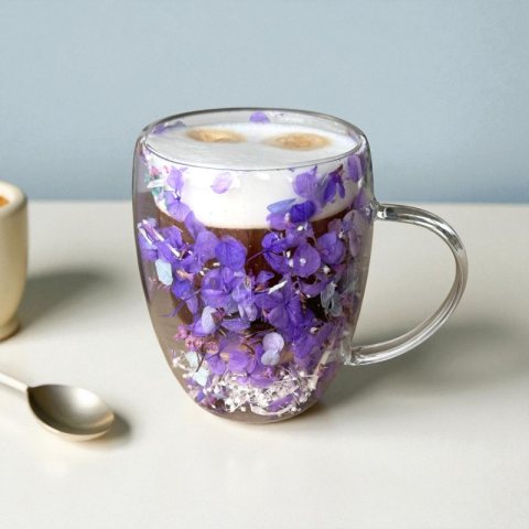 Szklanka termiczna z kwiatami w środku, gipsówka hortensje 300 ml 1szt SZK166