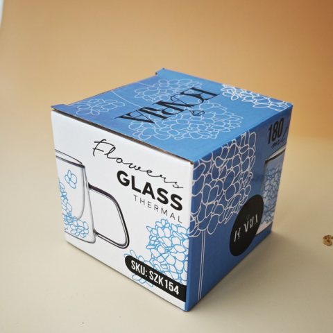 Szklanka termiczna Wykonane z wysokiej jakości odpornego na uszkodzenia szkła. Dzięki odpowiednio dobranym rozmiarom, szklanki idealnie mieszczą się w dłoni i pozwalają cieszyć się ich zawartością. Ładnie się prezentują zarówno w trakcie użytkowania jak i spoczywając w witrynie mebli. Specyfikacja: – wykonane ze szkła boro- krzemowego – dzięki czemu są odporne na uszkodzenia oraz zarysowania – spakowane w ozdobne pudełeczko Wymiary szklanki: Wysokość: 7,5 cm Średnica zewnętrzna od góry: 7,5 cm Średnica zewnętrzna od dołu: 9,5 cm Pojemność: 180 ml Wymiary pudełka: 11 cm x 11 cm x 10 cm Waga: 131 g netto / 176 g brutto