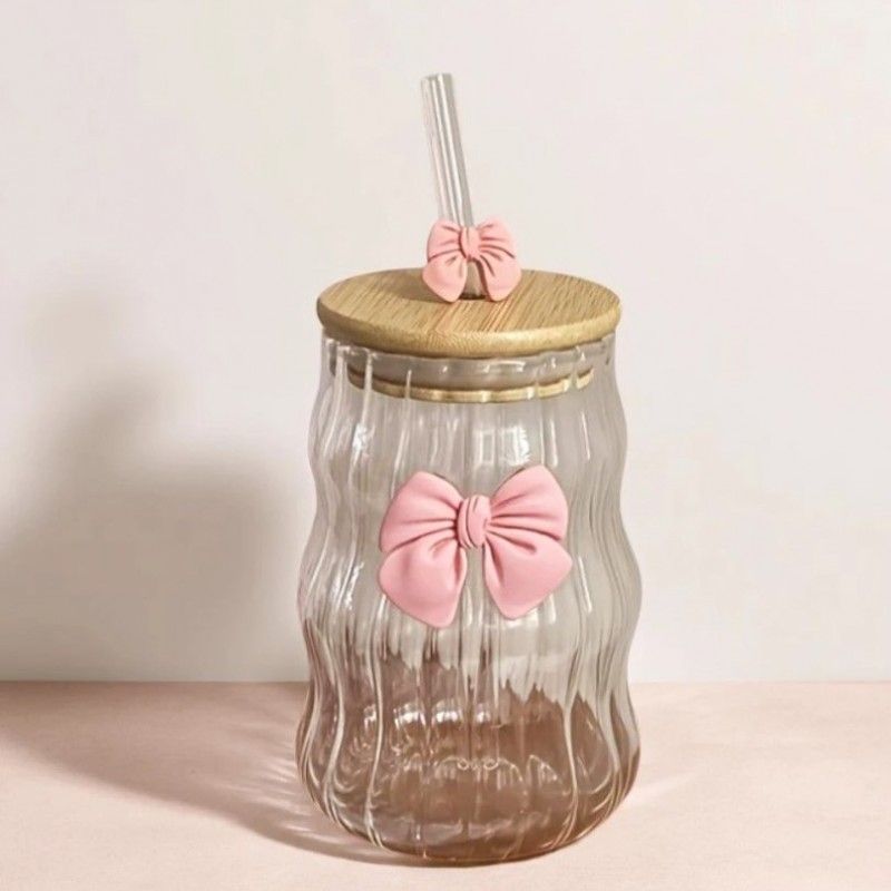 Szklanka z falowanymi ściankami KOKARDA 450 ml ze słomką i pokrywką SZK183