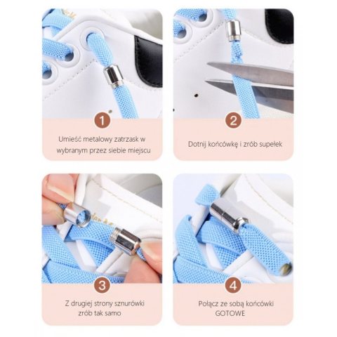 Sznurówki do butów bez wiązania 2szt Para elastycznych sznurowadeł z metalową spinką do zakręcania. Idealne dla dzieci i osób uprawiających sport. Sznurówki można dopasować na wymiar buta. Zestaw zawiera: – 2 sznurówki – 2 zaczepy Długość: 100cm Wymiary opakowania: 14,5 cm x 10 cm Waga: 13 g netto / 15g brutto