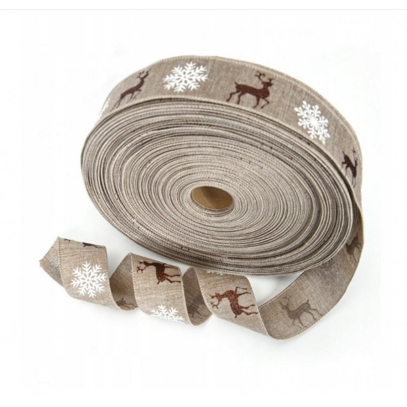 TAŚMA ŚWIĄTECZNA BOŻONARODZENIOWA Specyfikacja: Kolor: beżowa taśma z reniferami i śnieżkami Wymiary: Długość: 2 m Szerokość: 5 cm