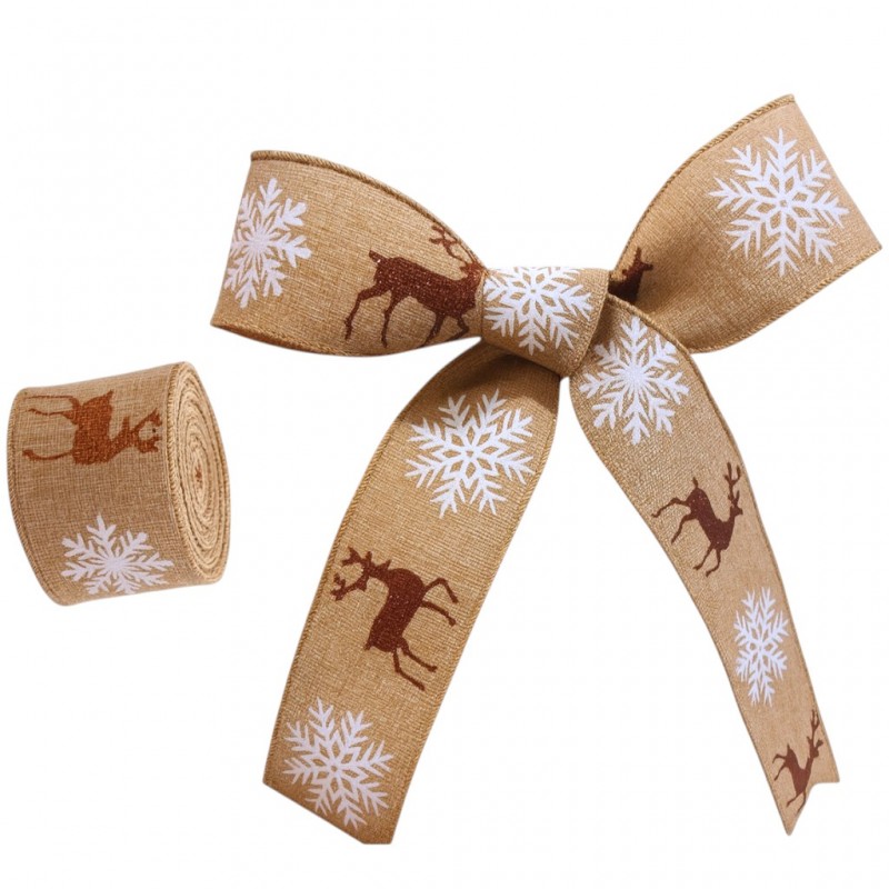 TAŚMA ŚWIĄTECZNA BOŻONARODZENIOWA Specyfikacja: Kolor: beżowa taśma z reniferami i śnieżynkami Wymiary: Długość: 2 m Szerokość: 5 cm