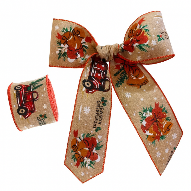 TAŚMA ŚWIĄTECZNA BOŻONARODZENIOWA Specyfikacja: Kolor: beżowa taśma z czerwonymi samochodzikami i choinkami Wymiary: Długość: 2 m Szerokość: 6,3 cm