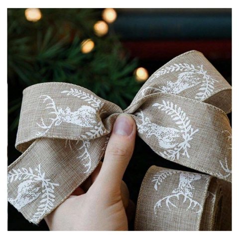 TAŚMA ŚWIĄTECZNA BOŻONARODZENIOWA Specyfikacja: Kolor: beżowa taśma z białymi jelonkami Wymiary: Długość: 2 m Szerokość: 5 cm