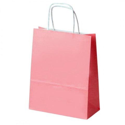 Torba papierowa w kolorze różowym z białą skręcaną rączką Wnętrze białeWymiary:41 x 31 x 15 cmWaga:63 g.