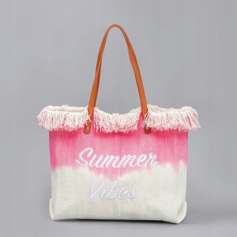 TORBA PLAŻOWA wakacyjna BOHO z frędzlami różowa ombre, na zakupy TP14R