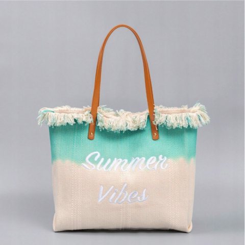 TORBA PLAŻOWA, Wakacyjna BOHO Z frędzlami zielona ombre, na zakupy TP14ZIE