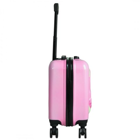 STYLOWA DZIECIĘCA WALIZKA PODRÓŻNA NA KÓŁKACH Walizka posiada wysuwaną rączkę teleskopową i zamek szyfrowy, wyposażona jest w cztery koła 360 st odporne na obciążenie. Dwuczęściowa komora chroni bagaż przed zniszczeniem, środek walizki jest całościowo wyłożony podszewką. Walizka dodatkowo wyposażona jest w pasy zabezpieczające wewnątrz, zapinana na dwustronny zamek błyskawiczny. Idealnie nadaje się do samolotu, będzie przydatna na wszelkiego typu wycieczki, wyjazdy wakacyjne, szkolne, czy przedszkolne wyprawy. Walizka została wykonana z tworzywa z ABS, wytrzymałego na uszkodzenia poliwęglanu. Wymiary: Szerokość: 35 cm Głębokość: 25 cm Wysokość z kółkami: 45 cm Wysokość z rączką: 75 cm Waga z opkowaniem: 2,63 kg
