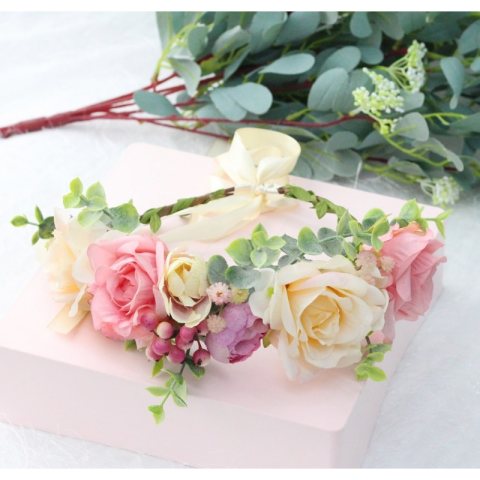 Romantyczny wianek na głowę z wysokiej jakości kwiatów sztucznych. wianek jest uniwersalny, mogą go zakładać zarówno dzieci, jak i dorosłe osoby. Idealny dodatek na wyjątkowe okazje jak i na co dzień.