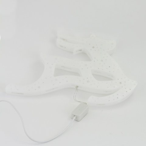 OZDOBA ŚWIĄTECZNA NA BOŻE NARODZENIE Wisząca ozdoba na ścianę/okno z kablem. Wymiary: Wysokość : 28 cm Długość : 43 cm Długość kabla : 73 cm Po podłączeniu produkt miga na kilka kolorów.