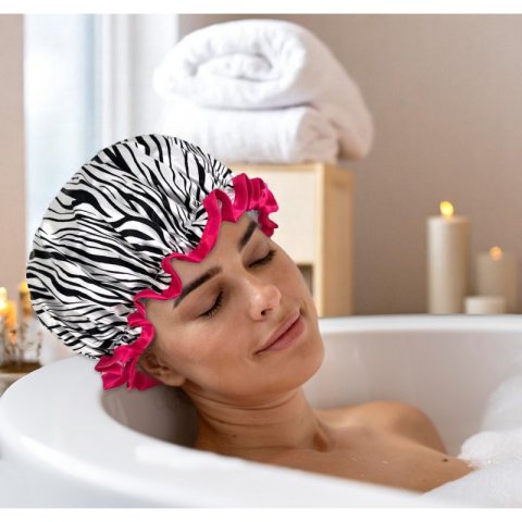 Wodoodporny czepek ochronny, kąpielowy na włosy, do spania, ZEBRA KCZ02