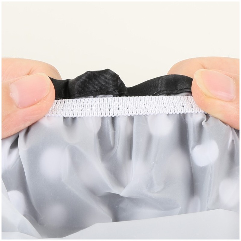 Wodoodporny czepek ochronny na włosy Czepek jest idealny do kąpieli, pod prysznic a także podczas wykonywania SPA, makijażu i czyszczenia twarzy. Cechy: Skutecznie zapobiega zwilżaniu włosów podczas kąpieli. Bardzo wygodne noszenie na głowie, łatwe do mycia. Składana do bardzo małych rozmiarów, idealna do przenoszenia podczas podróży. Z elastyczną taśmą, pasuje do każdej kobiety o dowolnej długości włosów. Wymiary na płasko: 18cm x 19cm Produkt ma wbudowaną gumkę i jest rozciągliwy. Wymiary zestawu w opakowaniu jednostkowym: 19cm x 14cm x 4cm Waga zestawu: 24g netto / 29g brutto