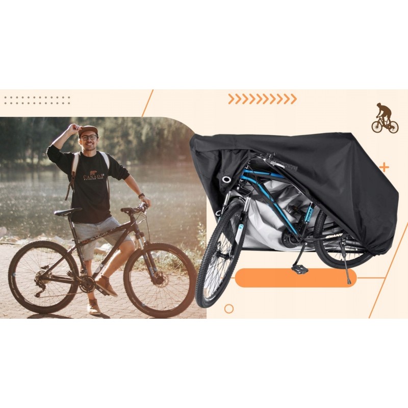 Profesjonalny pokrowiec na rower, motor lub skuter Pokrowiec świetnie sprawdzi się do przechowywania Twojego środka transportu. Specyfikacja: – Chroni przed deszczem, pyłem, kurzem oraz szkodliwym działaniem promieniowania UV. – Pokrowiec odporny na warunki atmosferyczne. – Posiada elastyczne wykończenie na gumkę i ściągacz. – Produkt spakowany w etui na zamek. – Materiał: 100% poliester. Wymiary: 200x70x110 cm Waga: 450 g