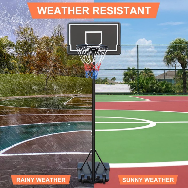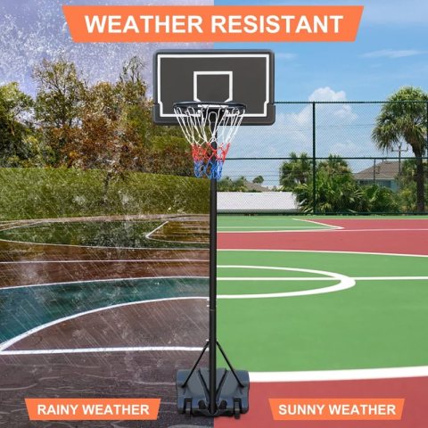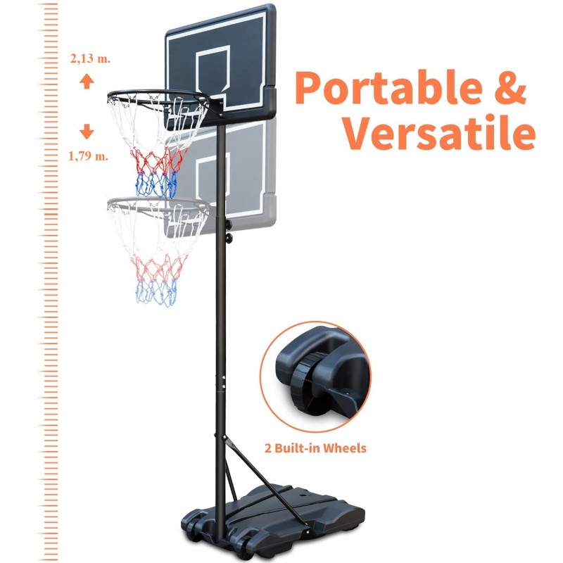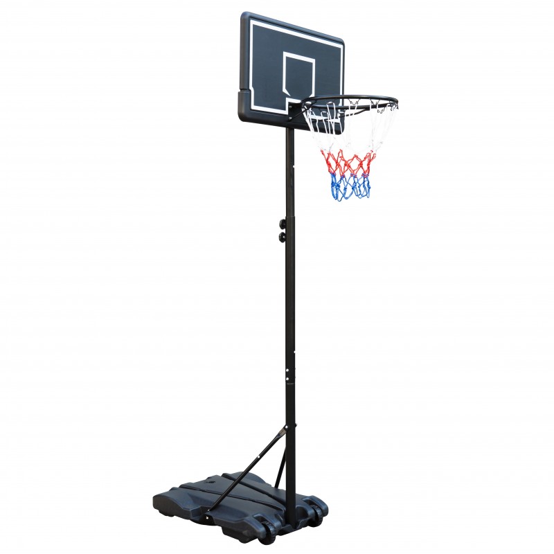Wolnostojący kosz do koszykówki z regulacja wysokości Przenośny zestaw do koszykówki. Kosz do koszykówki wyposażony jest w solidną budowę i nylonową siatkę odporną na różne warunki atmosferyczne. Tylna ścianka to poliwęglan, który zapewnia trwałość i profesjonalny wygląd. Dzięki teleskopowemu systemowi regulacji łatwo dostosujesz wysokość kosza do poziomu swoich umiejętności– od 1,79m do 2,19 m. Kosz opiera się na stabilnej podstawie o pojemności 32 litrów. Można ją wypełnić piaskiem lub wodą, aby zapewnić odpowiednią stabilność. Po zakończeniu gry łatwo opróżnisz podstawę i przeniesiesz kosz w inne miejsce. Wymiary Wysokość- 1,79 m x 2,19 m Rozmiar tablicy: 71 x 45 x 2 cm Wymiary podstawy: 74 x 55 x 13 cm Średnica obręczy: 39 cm Średnica stalowej rurki: 45 mm Wymiary produktu w kartonie: 56,5 x 77,5 x 16 cm Waga: 9 kg