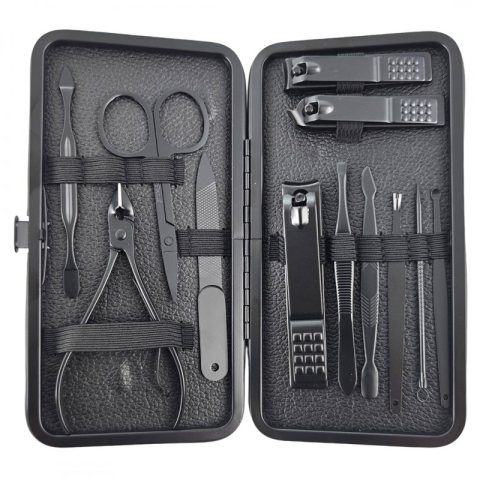 Zestaw akcesoriów do manicure, pedicure w etui, czarny 12w1 AK21