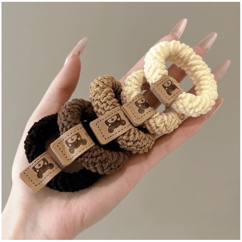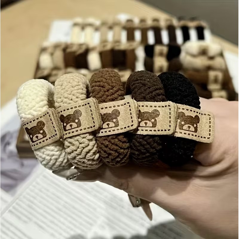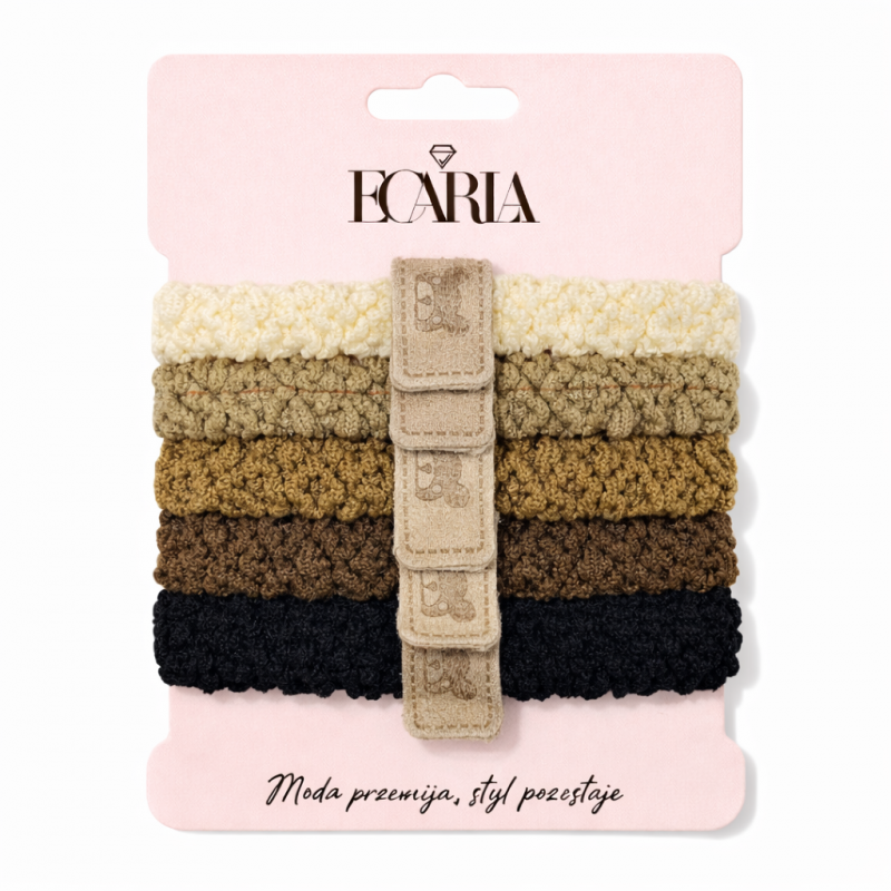 Zestaw frotek gumek 5w1 na plakietce, misie brąz beż GUM191