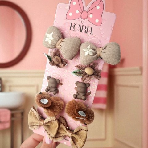 Zestaw frotek gumek do włosów 10w1 na plakietce, KOKARDKI, królik GUM170
