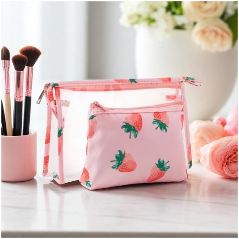 Zestaw kosmetyczek 2w1, saszetki, transparentna TRUSKAWKI KS152
