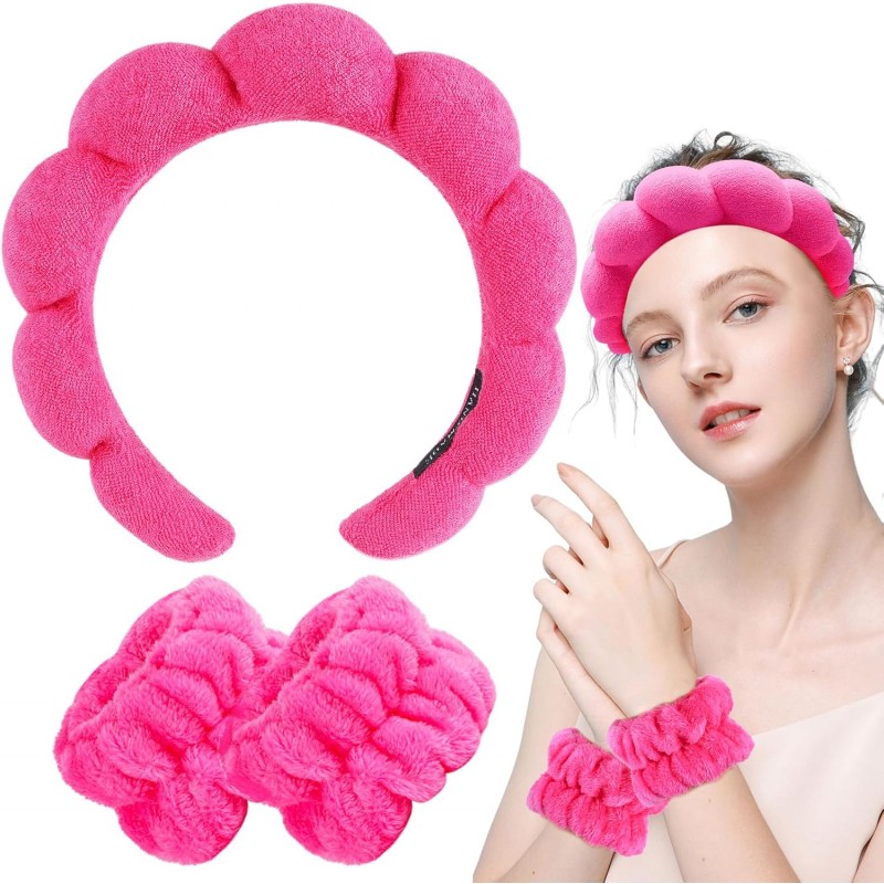 Zestaw opasek kosmetycznych na głowę i nadgarstki Wykonane z wysokiej jakości jedwabistej tkaniny, gładkiej, miękkiej i lekkiej, nie poczuje się niekomfortowo nawet przy długim noszeniu. Zestaw zawiera: – 1 opaskę na głowę – 2 opaski na nadgarstki Skład: 100% Mikrofibra Wymiary: Opaska na głowę: 17 x 19 cm Opaska na nadgarstek: 8 x 5,5 cm Waga: 81 g brutto 79 g netto