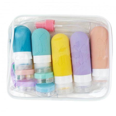 Zestaw silikonowych pojemniczków, buteleczek, słoiczków podróżnych 14w1 KS143