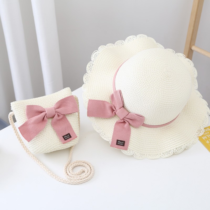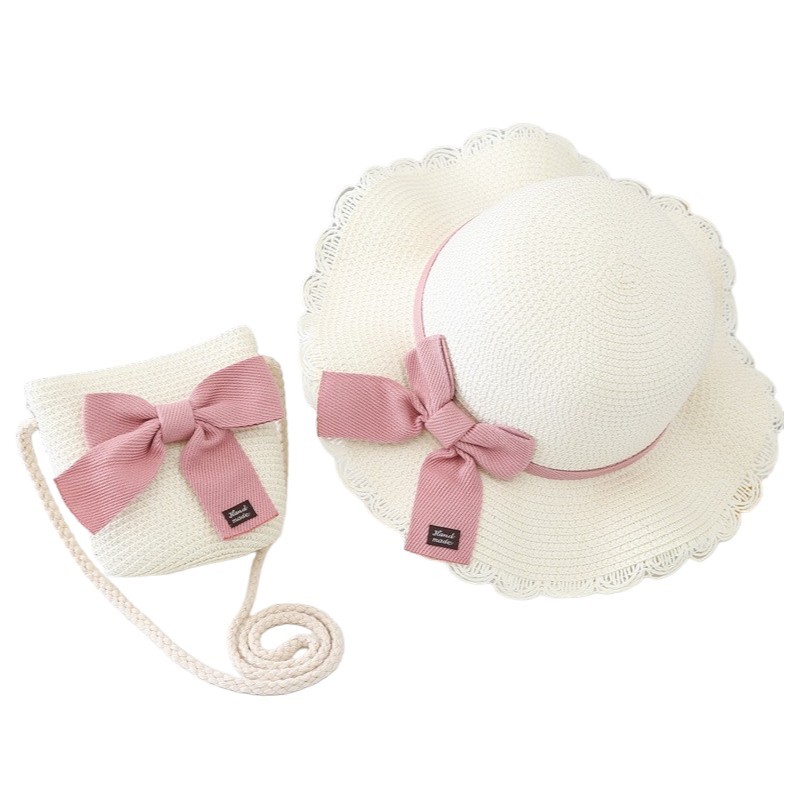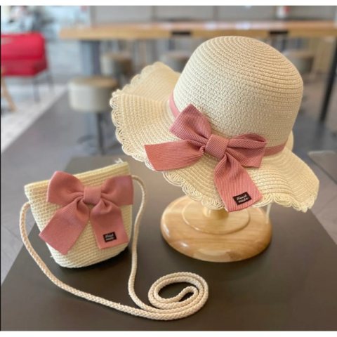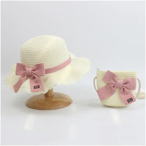 ZESTAW torebka i kapelusz 52cm dla dziewczynki słomiane KOKARDA CZ43