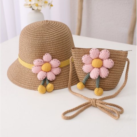 ZESTAW torebka i kapelusz 52cm dla dziewczynki słomiane kwiat CZ56