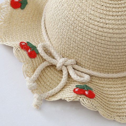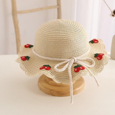 ZESTAW torebka i kapelusz 52cm dla dziewczynki słomiane WISIENKI CZ44