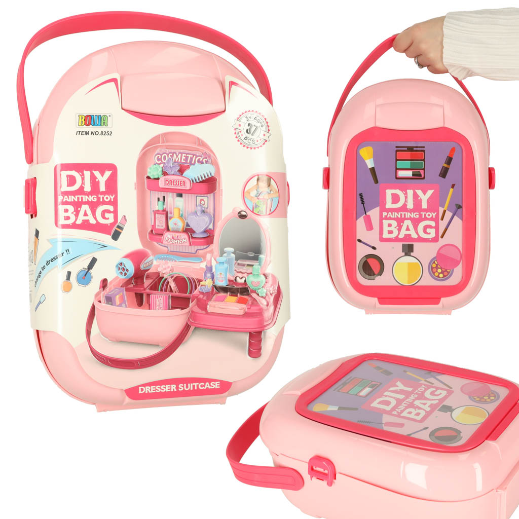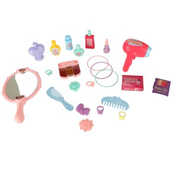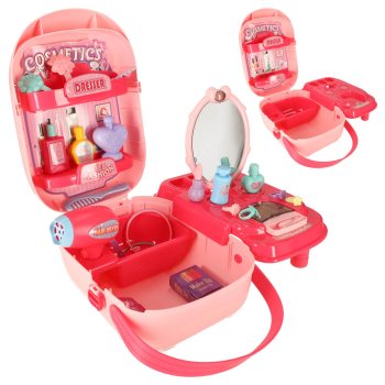 Fantastyczny zestaw kosmetyczny z akcesoriami. Posiada niezbędne przyrządy, aby stać się profesjonalną fryzjerką lub kosmetyczką. Zapakowany w praktyczną walizkę, którą można wszędzie zabrać. Zabawa pobudzi wyobraźnię. Wymiary walizki: 32x19x12cm.